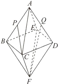 1 解析:正八面体 $ABCDEF$ 中,$\overrightarrow{CA},\overrightarrow{CB},\overrightarrow{CD}$ 不共面,而 $P,Q$ 分别为棱 $AB,AD$ 的中点,
