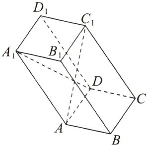 又 $\overrightarrow{AC_1}\cdot\overrightarrow{A_1D}=(\overrightarrow{AB}+\overrightarrow{AD}+\overrightarrow{AA_1})\cdot(-\overrightarrow{AA_1}+\overrightarrow{AD})=-\overrightarrow{AB}\cdot\overrightarrow{AA_1}+\overrightarrow{AB}\cdot\overrightarrow{AD}-\overrightarrow{AD}\cdot\overrightarrow{AA_1}+\overrightarrow{AD}^2-\overrightarrow{AA_1}^2+\overrightarrow{AD}\cdot\overrightarrow{AA_1}=-1\times2\times(-\frac{1}{2})+0-1\times2\times(-\frac{1}{2})+1 - 4+1\times2\times(-\frac{1}{2})=-2$,