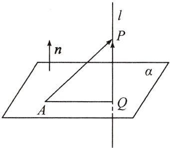 如图,已知平面$\alpha$的法向量为$n$,$A$是平面$\alpha$内的定点,$P$是平面$\alpha$外一点. 过点$P$作平面$\alpha$的垂线$l$,交平面$\alpha$于点$Q$,则$n$是直线$l$的方向向量,且点$P$到平面$\alpha$的距离就是$\overrightarrow{AP}$在直线$l$上的投影向量$\overrightarrow{QP}$的长度. 因此$PQ = |\overrightarrow{AP}\cdot\frac{n}{|n|}|=\frac{|\overrightarrow{AP}\cdot n|}{|n|}=$______.