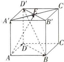 (2)因为$\overrightarrow{AE}=\overrightarrow{AA'}+\overrightarrow{A'E}=\overrightarrow{AA'}+\frac{1}{2}\overrightarrow{A'C'}=\overrightarrow{AA'}+\frac{1}{2}(\overrightarrow{A'B'}+\overrightarrow{A'D'})=\overrightarrow{AA'}+\frac{1}{2}\overrightarrow{A'B'}+\frac{1}{2}\overrightarrow{A'D'}=\frac{1}{2}\overrightarrow{AD}+\frac{1}{2}\overrightarrow{AB}+\overrightarrow{AA'}$,