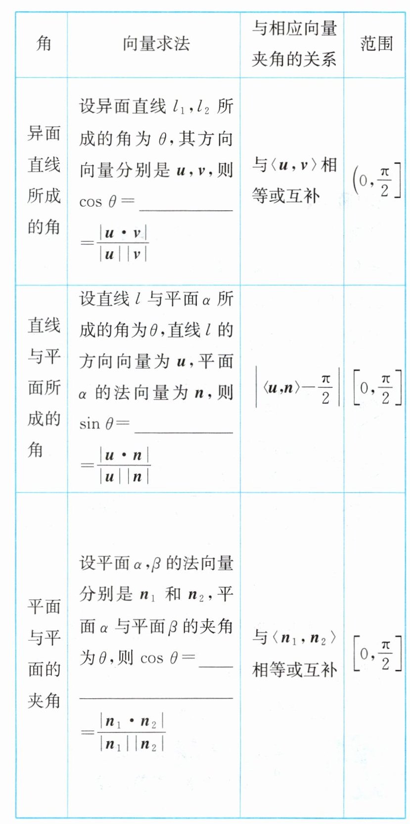 $|\cos \langle \boldsymbol{u},\boldsymbol{v}\rangle|$ $|\cos \langle \boldsymbol{u},\boldsymbol{n}\rangle|$ $|\cos \langle \boldsymbol{n}_1,\boldsymbol{n}_2\rangle|$