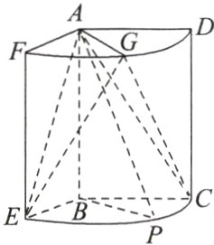 2. 如图,几何体是圆柱的一部分,它是由矩形$ABCD$(及其内部)以$AB$边所在直线为旋转轴旋转$120^{\circ}$得到的,$G$是$\overset{\frown}{DF}$的中点.