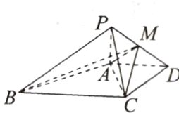 (2)在线段$PD$上,是否存在一点$M$,使得平面$ACM$与平面$ACD$的夹角为$60^{\circ}$?如果存在,求$\frac{PM}{PD}$的值;如果不存在,请说明理由.
