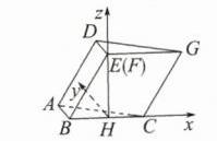 探究2 提示:作EH⊥BC,垂足为H. 因为EH⊂平面BCGE,平面BCGE⊥平面ABC,所以EH⊥平面ABC. 由已知,菱形BCGE的边长为2,∠EBC = 60°,可得BH = 1,EH = $\sqrt{3}$. 以H为坐标原点,$\overrightarrow{HC}$的方向为x轴的正方向,建立如图所示的空间直角坐标系Hxyz,