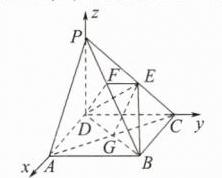 证明:以$D$点为坐标原点,$\overrightarrow{DA}$,$\overrightarrow{DC}$,$\overrightarrow{DP}$所在的方向为$x$轴、$y$轴、$z$轴的正方向建立空间直角坐标系$Dxyz$(如图所示),设$DC = a$。