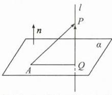 已知平面$\alpha$的法向量为$n$,$A$是平面$\alpha$内的定点,$P$是平面$\alpha$外一点,则$PQ=\left|\overrightarrow{AP}\cdot\frac{n}{|n|}\right|=\frac{|\overrightarrow{AP}\cdot n|}{|n|}=\frac{|\overrightarrow{AP}\cdot n|}{|n|}$。