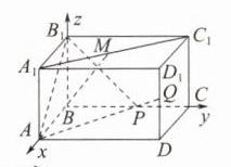解:如图,建立空间直角坐标系$Bxyz$,则$A(4,0,0)$,$M(2,3,4)$,$P(0,4,0)$,$Q(4,6,2)$,$B_{1}(0,0,4)$。