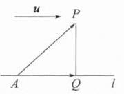 设$\overrightarrow{AP}=a$,则向量$\overrightarrow{AP}$在直线$l$上的投影向量$\overrightarrow{AQ}=(a\cdot u)u$。在$Rt\triangle APQ$中,由勾股定理,得$PQ=\sqrt{|\overrightarrow{AP}|^{2}-|\overrightarrow{AQ}|^{2}}=\sqrt{a^{2}-(a\cdot u)^{2}}$。