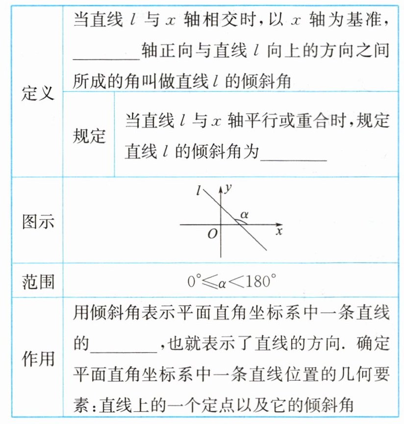 1.若直线l的倾斜角α=135°,则其斜率k=