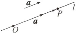 2. 如图,O是直线l上一点,在直线l上取非零向量a,则对于直线l上任意一点P,由数乘向量的定义及向量共线的充要条件可知,存在实数λ,使得$\overrightarrow{OP}$=_______. 我们把与向量a平行的非零向量称为直线l的_______. 这样,直线l上任意一点都可以由直线l上的一点和它的_______表示,也就是说,直线可以由其上一点和它的_______确定.