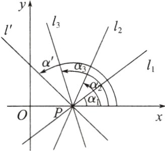 D 解析:如图,当$l$向上方向的部分在$y$轴左侧时,倾斜角为$90^{\circ}+\alpha$;当$l$向上方向的部分在$y$轴右侧时,倾斜角为$90^{\circ}-\alpha$. 故选D.