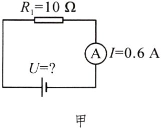 (1)根据等效电路图甲可知电流表测量电路电流,由$I = \frac{U}{R}$可得,电源电压: