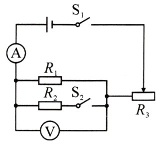 (1)当闭合$S_{1}$,断开$S_{2}$时,电压表测的是电阻$R_{1}$两端的电压,电流表测的是通过电阻$R_{1}$的电流