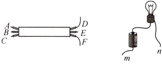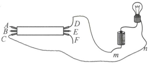 (3)若确定A、D线头为同一根导线的两端,连接A、B线头,将导线m连接在D线头上,当导线n连接F线头时小灯泡发光,由此可以确定C线头和__________为同一根导线的两端。