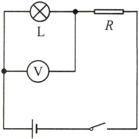8. 如图所示的电路中,定值电阻$R$的阻值为12Ω。闭合开关后,电压表示数为7.2V,灯泡L的电阻为36Ω。(不考虑温度对灯泡电阻的影响)求: