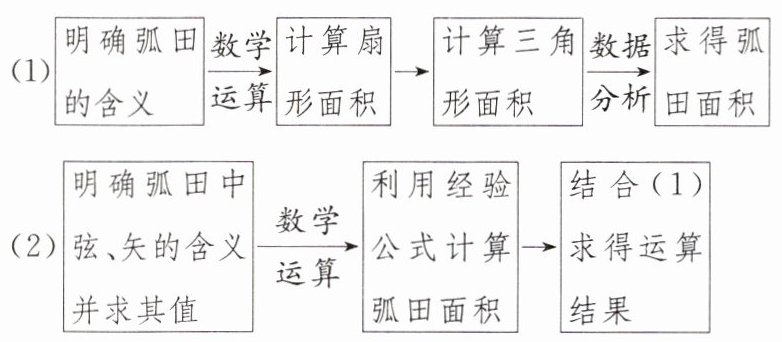 2. 《九章算术》是我国古代数学成就的杰出代表。其中“方田”章给出计算弧田面积所用的经验公式为:弧田面积$ = \frac{1}{2}$(弦×矢 + 矢$^2$)。弧田由圆弧和其所对弦所围成,公式中“弦”指圆弧所对弦长,“矢”等于半径长与圆心到弦的距离之差。按照上述经验公式计算所得弧田面积与其实际面积之间存在误差。