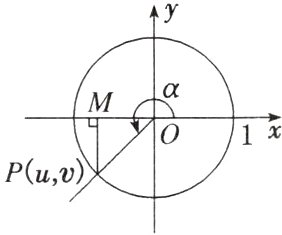 如图,在平面直角坐标系中,给定任意角α,作单位圆,角 α的终边与单位圆的交点为P(u,v),把点P的纵坐标v叫作角α的________,把点P的横坐标u叫作角α的__________.在弧度意义下,对于α∈R,称v = sinα为任意角α的正弦函数,u = ________为任意角α的余弦函数.