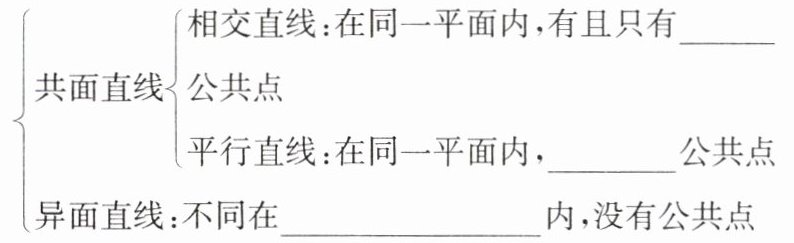 一个 没有 任何一个平面 提示:不一定.可能平行、相交或异面.