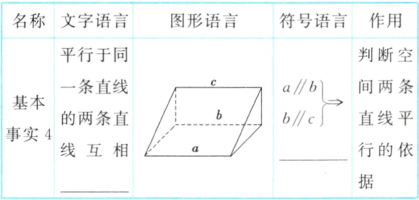 一基本事实表述的性质通常称为空间平行线的____________.