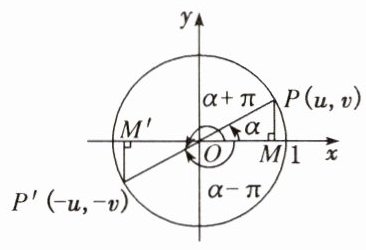 2. sinα,cosα与sin(α±π),cos(α±π)的关系:如图,P与P'关于原点对称.