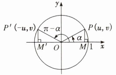 3. sinα,cosα与sin(π - α),cos(π - α)的关系:如图,点P和点P'关于y轴对称.