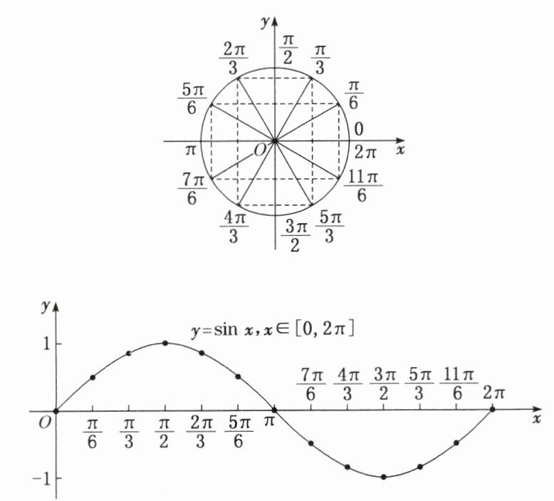 (1)正弦函数图象在平面直角坐标系中的作法:
