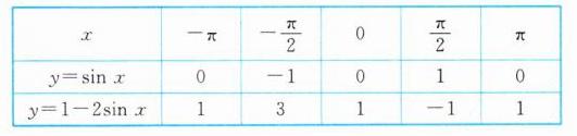 1. 用“五点(画图)法”作出函数y = 1 - 2sinx,x∈[-π, π]的简图,并回答下列问题: