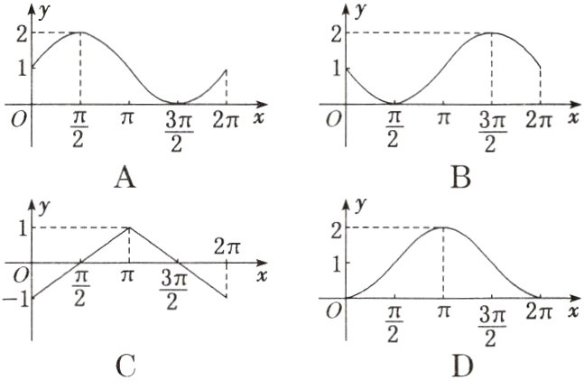 1. 函数$y = 1 - \sin x$,$x\in[0,2\pi]$的大致图象是( )