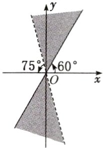 解:在0°~360°范围内,终边落在阴影部分的角为60° ≤ β < 105°与240° ≤ β < 285°,所以所有满足题意的角β为{β|k·360° + 60° ≤ β < k·360° + 105°,k∈Z}∪{β|k·360° + 240° ≤ β < k·360° + 285°,k∈Z} = {β|2k·180° + 60° ≤ β < 2k·180° + 105°,k∈Z}∪{β|(2k + 1)·180° + 60° ≤ β < (2k + 1)·180° + 105°,k∈Z} = {β|n·180° + 60° ≤ β < n·180° + 105°,n∈Z}.故角β的取值集合为{β|n·180° + 60° ≤ β < n·180° + 105°,n∈Z}.