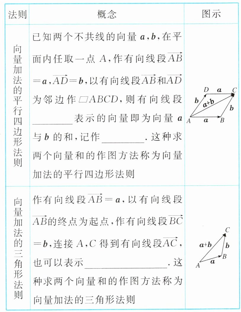 $\overrightarrow{AC}=\overrightarrow{a}+\overrightarrow{b}$ 向量 $\overrightarrow{a}$ 与 $\overrightarrow{b}$ 的和