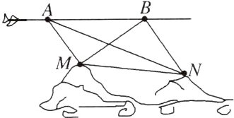 请设计一个方案,包括:①指出需要测量的数据(用字母表示,并在图中标出);②用文字和公式写出计算M,N间的距离的步骤.