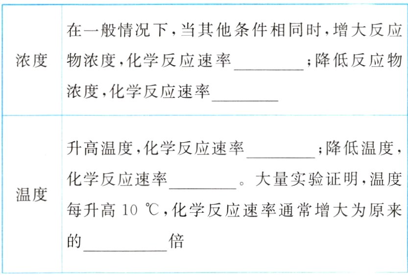 反应速率是由反应物的____________等因素决定的。2. 外因——浓度、压强、温度及催化剂等
