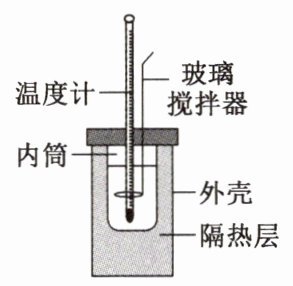 实验室利用$50\ mL\ 0.50\ mol\cdot L^{-1}$盐酸与$50\ mL\ 0.55\ mol\cdot L^{-1}\ NaOH$溶液在右上图装置中进行中和反应反应热的测定。回答下列问题: