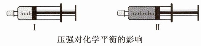 将${NO_{2}}$与${N_{2}O_{4}}$的混合气体密封于注射器中,推拉活塞,如下图所示。