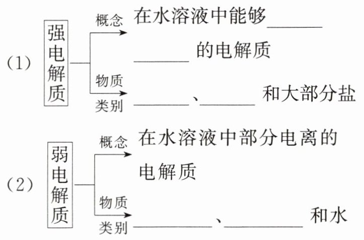 (2) 盐酸溶液中,HCl______电离生成H⁺和Cl⁻;CH₃COOH溶液中,CH₃COOH______电离生成CH₃COO⁻和H⁺。