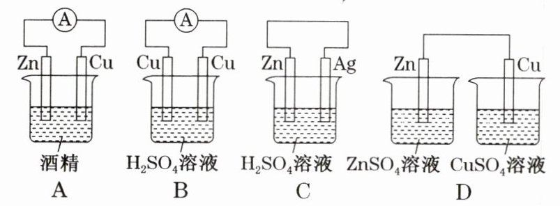 (1)原电池的构成条件:①有两个活泼性不同的电极,②将电极插入电解质溶液中,③两电极间构成闭合回路,④能自发地进行氧化还原反应,C装置符合构成原电池的条件。