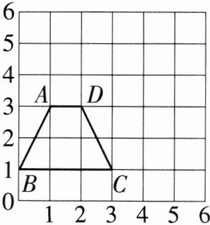 (2)点$B$的位置不动,按$2 : 1$的比画出等腰梯形放大后的图形$A'BC'D'$,并将各点的位置填在下面。