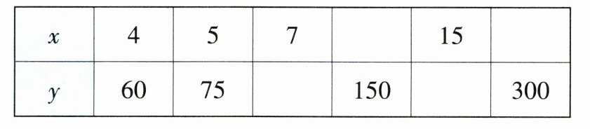 2 (1)$x$和$y$成正比例,补全下面表格。
