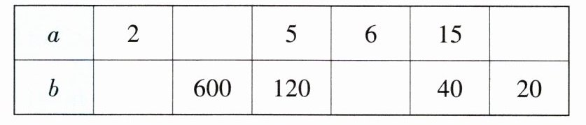 (2)$a$和$b$成反比例,补全下面表格。