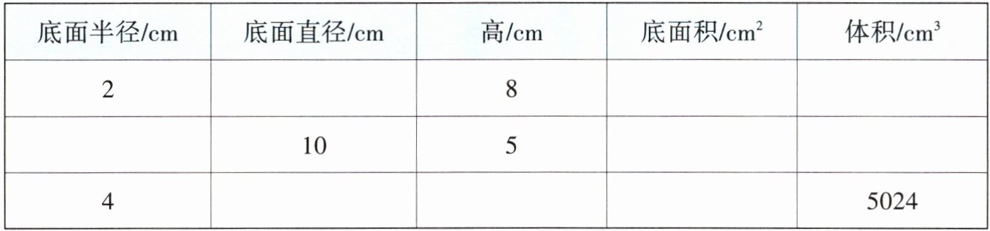 3 把下表中圆柱的相关数据补充完整。