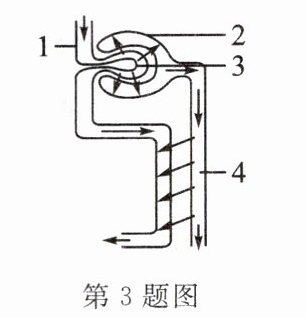 3. 如图为肾单位中尿液形成的示意图。某人尿检后发现尿液中有血细胞,发生病变的部位可能是 ( )