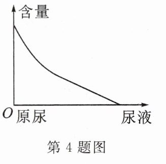 4. 如图是尿液形成过程中葡萄糖的浓度变化示意图。这种变化发生的主要部位是 ( )