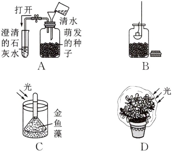 7. 如图实验装置中能验证植物呼吸作用释放二氧化碳的是 ( )