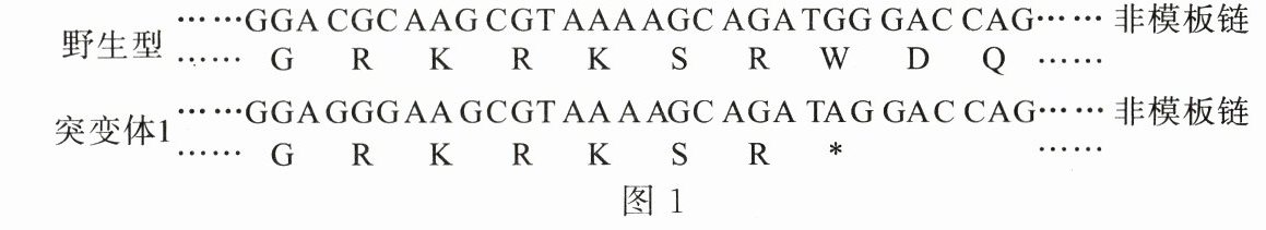 (2)经研究发现突变体1的突变基因为A基因,并对野生型和突变体1的A基因进行测序,结果如图1: