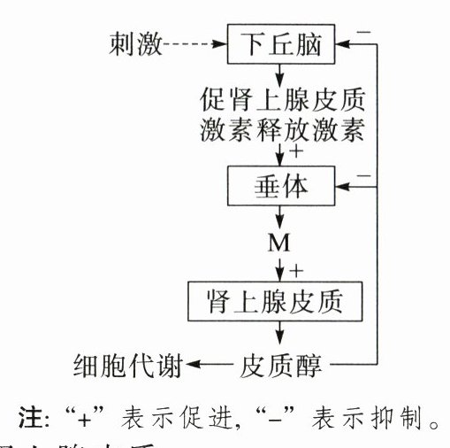 C 动物被运输过程中,刺激会引起下丘脑分泌激素,属于神经调节,其结构基础是反射弧,A正确;M由垂体分泌,作用于肾上腺皮质,促进肾上腺皮质分泌皮质醇,所以M是促肾上腺皮质激素,B正确;由题图可知,运输刺激导致动物体内皮质醇增多,通过反馈调节,皮质醇作用于下丘脑和垂体,进而抑制肾上腺皮质的分泌活动,使皮质醇含量逐渐恢复,C错误;皮质醇的分泌受到“下丘脑一垂体一肾上腺皮质轴”的调控,是分级调节的结果,D正确。