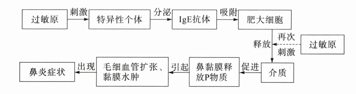 D 过敏性鼻炎是由机体的免疫防御功能过强导致的疾病,A错误;浆细胞无识别功能,过敏原不能刺激浆细胞,B错误;P物质引起鼻黏膜毛细血管扩张会导致组织液增加,从而出现组织水肿,C错误;匹多莫德可能通过阻止IgE吸附至肥大细胞上,从而阻止肥大细胞释放相应介质,以达到治疗效果,D正确。