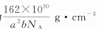 K⁺在8个顶点和2个面心,均摊为$\frac{1}{8}$×8 + $\frac{1}{2}$×2 = 2,根据化学式可知,N³⁻的个数为2个。N³⁻与CO2互为等电子体,结构相似,为直线形,A正确;由题图可知,以晶体中左侧底角的钾离子为例,在xy平面有4个N³⁻,在xz平面有4个N³⁻,故每个周围离最近且相等的共有8个N³⁻,B错误;晶胞质量为$\frac{2×81}{N_A}$g,密度为$\frac{162×10^{30}}{a^{3}bN_A}$g·cm⁻³,C正确;测定晶体结构的方法是X射线衍射法,D正确。
