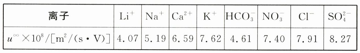 已知:电池装置中,盐桥中阴、阳离子不与溶液中的物质发生化学反应,并且电迁移率(u∞)(如下表)应尽可能地相近;两烧杯中溶液体积相等。