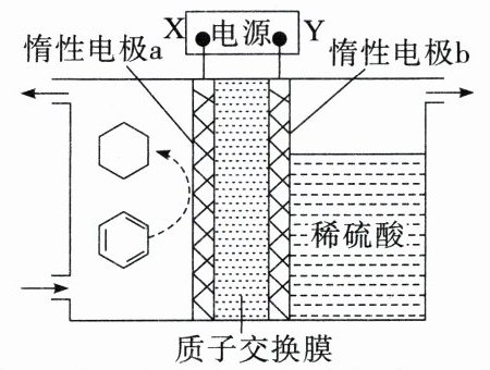 ,惰性电极a为阴极,惰性电极b为阳极,H₂O在阳极失去电子生成O₂,以此解答。由分析可知,惰性电极b为阳极,与电源的正极相连,Y为电源正极,A错误;惰性电极b为阳极,H₂O在阳极失去电子生成O₂,电极反应式为2H₂O - 4e⁻ = O₂↑ + 4H⁺,H⁺通过质子交换膜进入阴极区,H₂SO₄溶液中H⁺物质的量不变,但水被消耗了,H₂SO₄溶液的物质的量浓度增大,B错误;由分析可知,