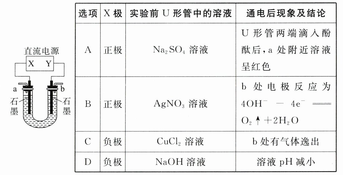 6.用如图所示装置(X、Y是直流电源的两极)分别进行下列各组实验,下表中各项所列对应关系均正确的是 ( )